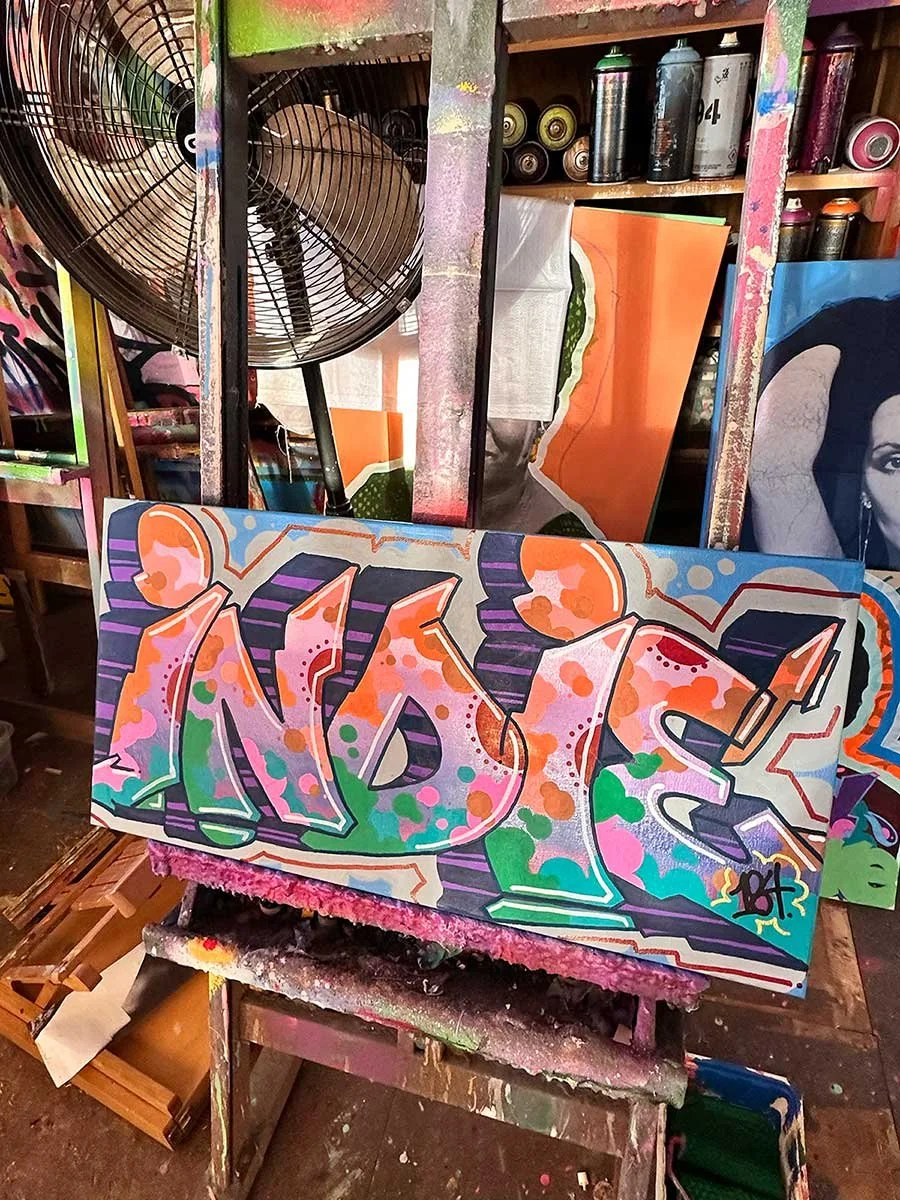 INDIE 184, “Graffiti Hall of Fame ‘25”, 12x24 inches, acrylic and enamel on canvas, 2026.