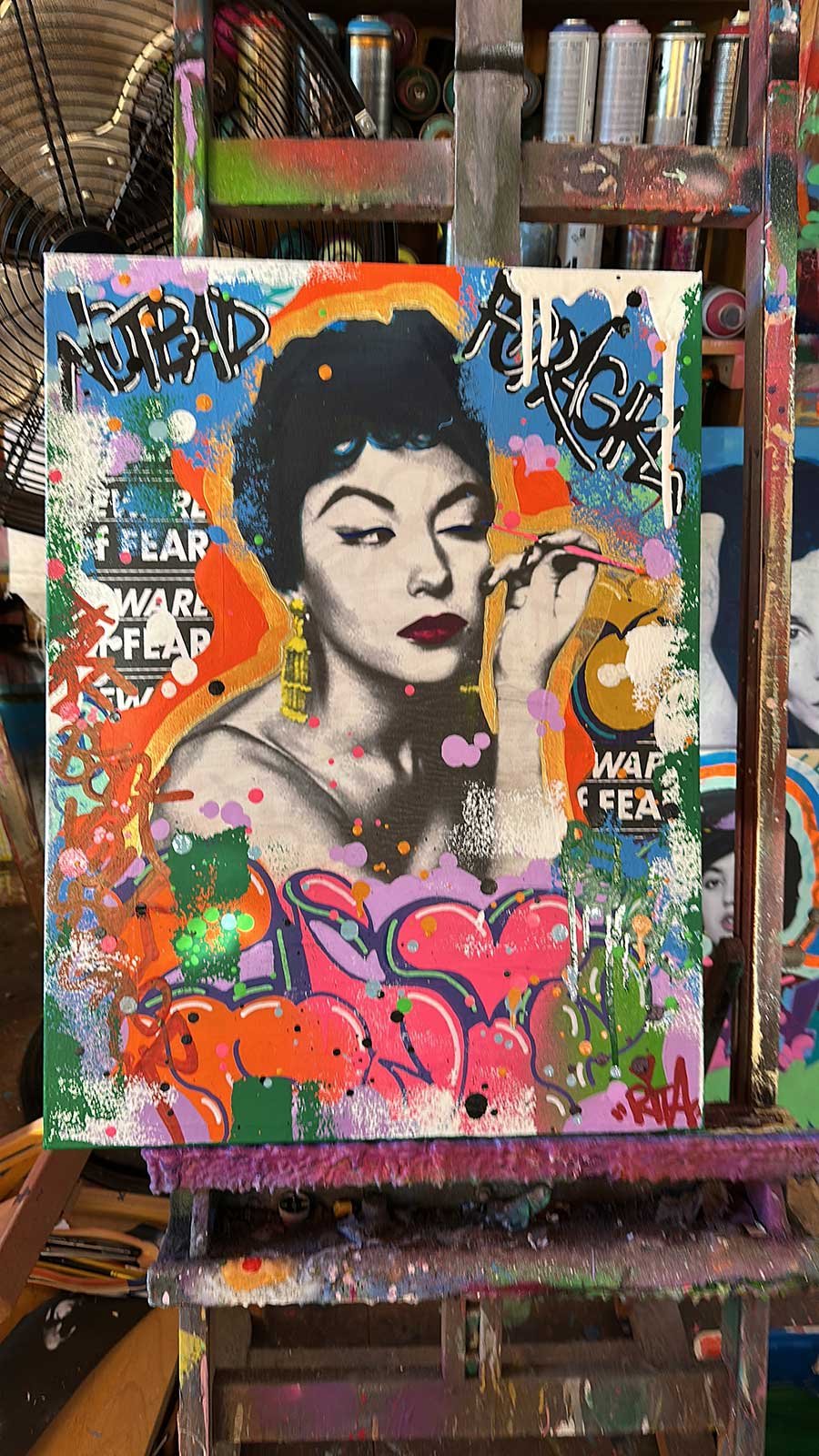INDIE 184, “Not Bad For A Girl”, 16x20 inches, mixed media on canvas, 2026. (A mini replica of my mural at The Ridge Hotel, NYC starring Rita Moreno.)